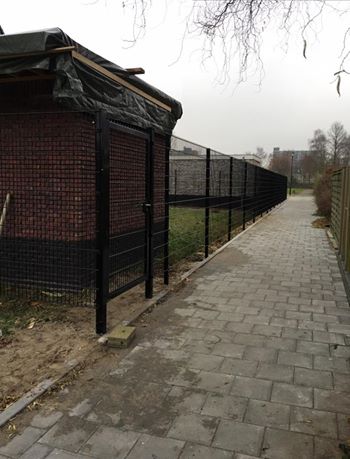 Afschermen van een achtertuin in Vlaardingen 65 meter dubbelstaafmat en een looppoort