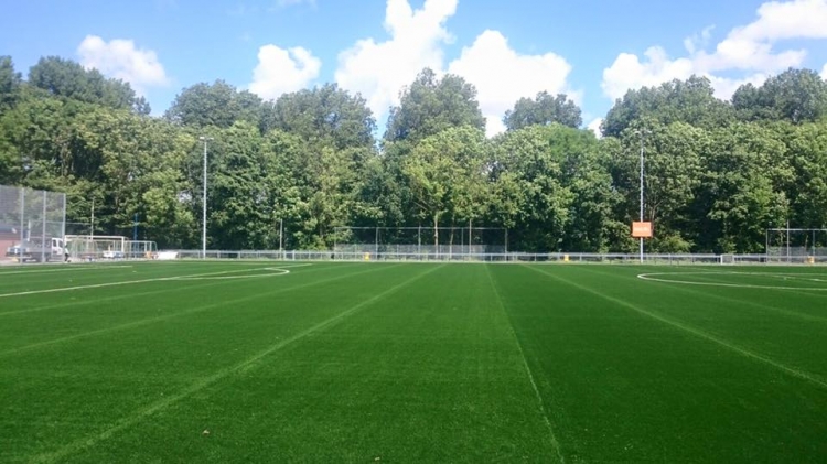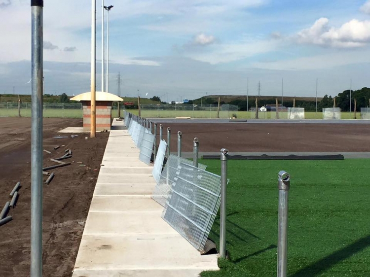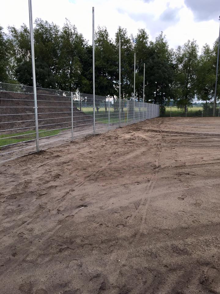 Sportveldafrastering te hoevenen leunhekwerk ballenvanger